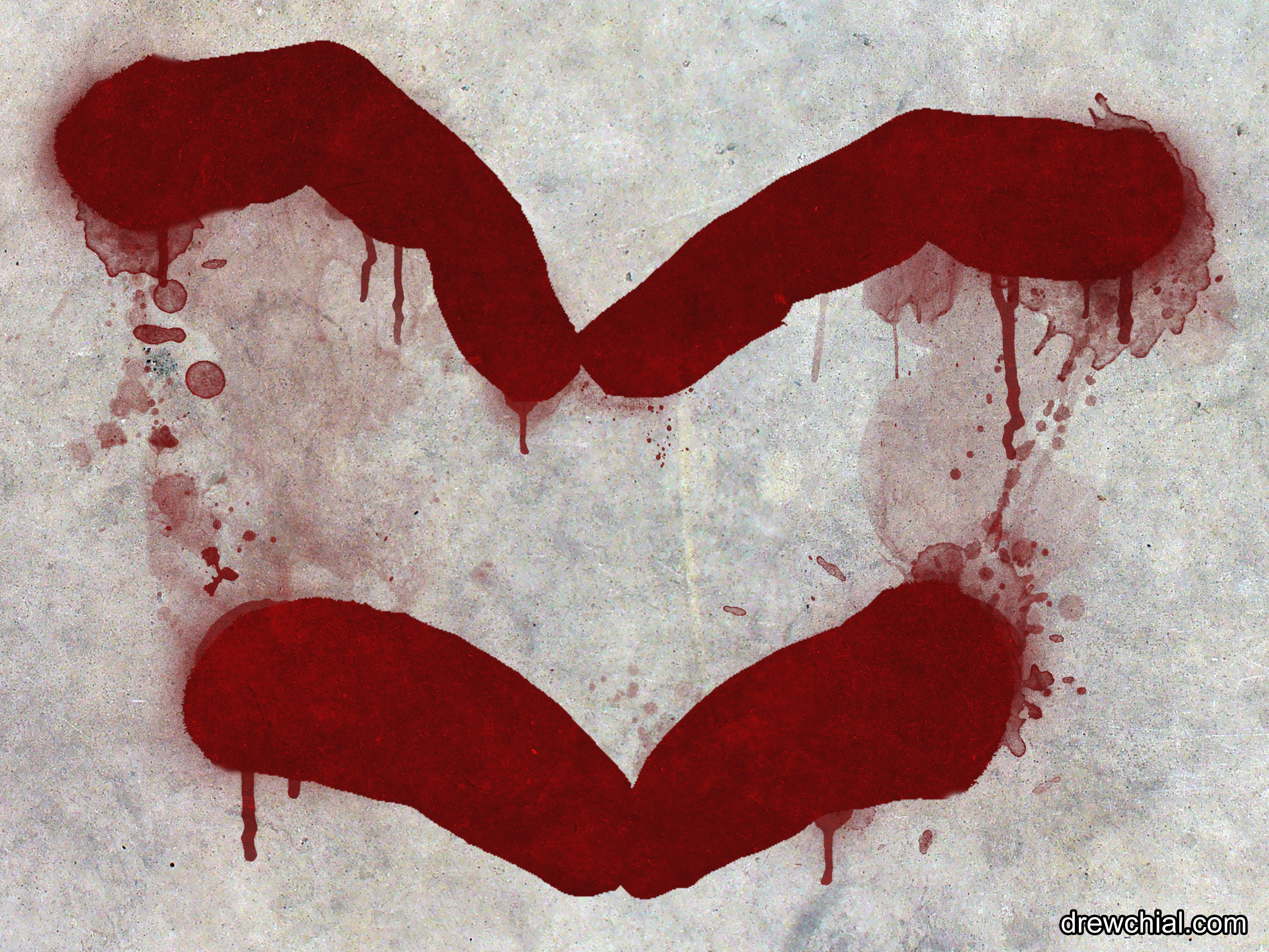 Made to look like I dipped my hands in blood, made a heart shape, and smeared it against the wall